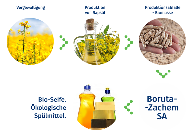Wir besitzen das Ausschließlichkeitsrecht einer auf Weltebene einzigartigen Technologie zur effizienten Herstellung von Tensiden von hohen schaumentwickelnden und emulgierenden Eigenschaften auf der Basis der Biomasse – Schrot nach der Extraktion und Rapskuchen. Zur Zeit arbeiten wir an der Nutzung unserer Bestände bei der Herstellung von Tensiden auf Industrieebene.